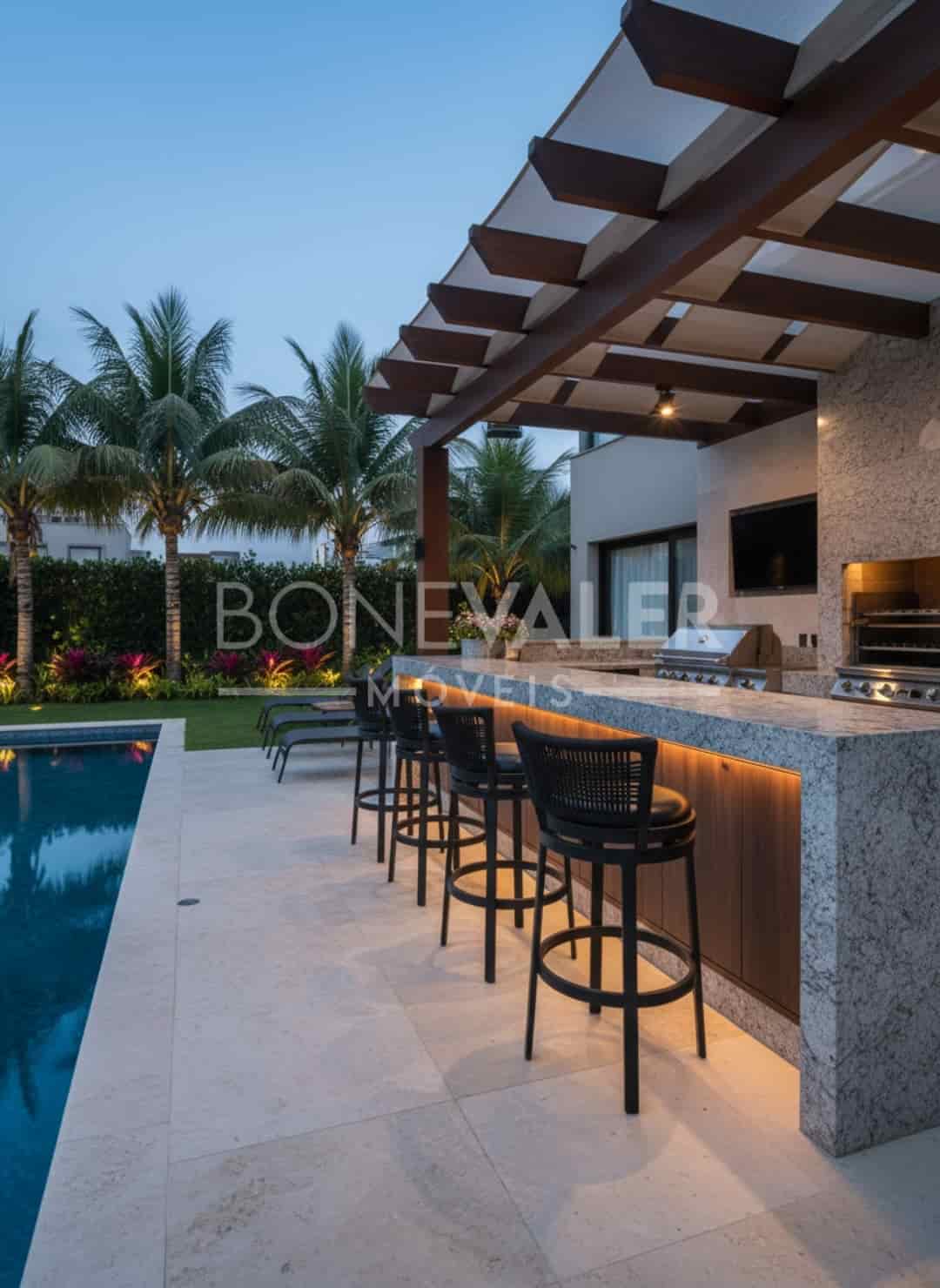 Seu grande diferencial é o sistema de giro 360°, que proporciona mais praticidade e liberdade de movimento, tornando a experiência de uso ainda mais confortável e dinâmica. O assento conta com estofados impermeáveis, ideais para áreas gourmet, varandas e espaços externos, garantindo durabilidade e fácil manutenção.
