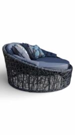 A Concha Ninho vem acompanhada de um estofado de encosto e 4 almofadas, todos confeccionados em tecido impermeável Acquablock, garantindo conforto e proteção contra sol e chuva.